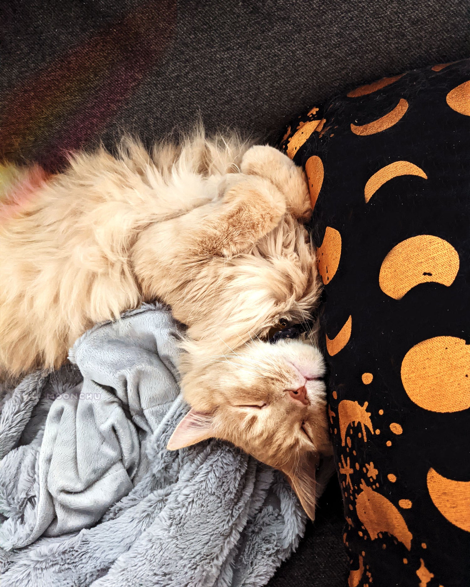 october's hunter's moon orange cat art, A5 mixed media original art print