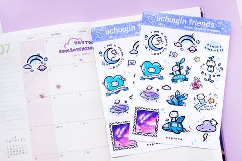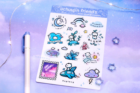 uchuujin friends alien sticker sheet, space friends sticker sheet, kiss cut