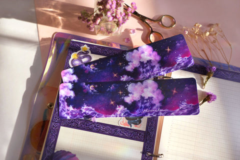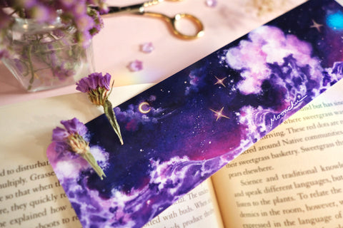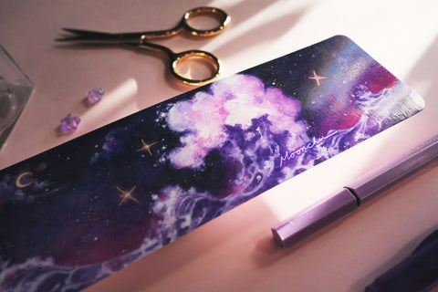 i love diving into a good novel and being swept away with the story line and emotions. perhaps you would enjoy marking your page with a high quality, very glossy, handmade and hand-embellished vibrant bookmark with some original art on it? or you could just use it as wall decor, like i do. it features one of my favourite things to paint - a fluffy ocean wave beneath a dark and moody sky.