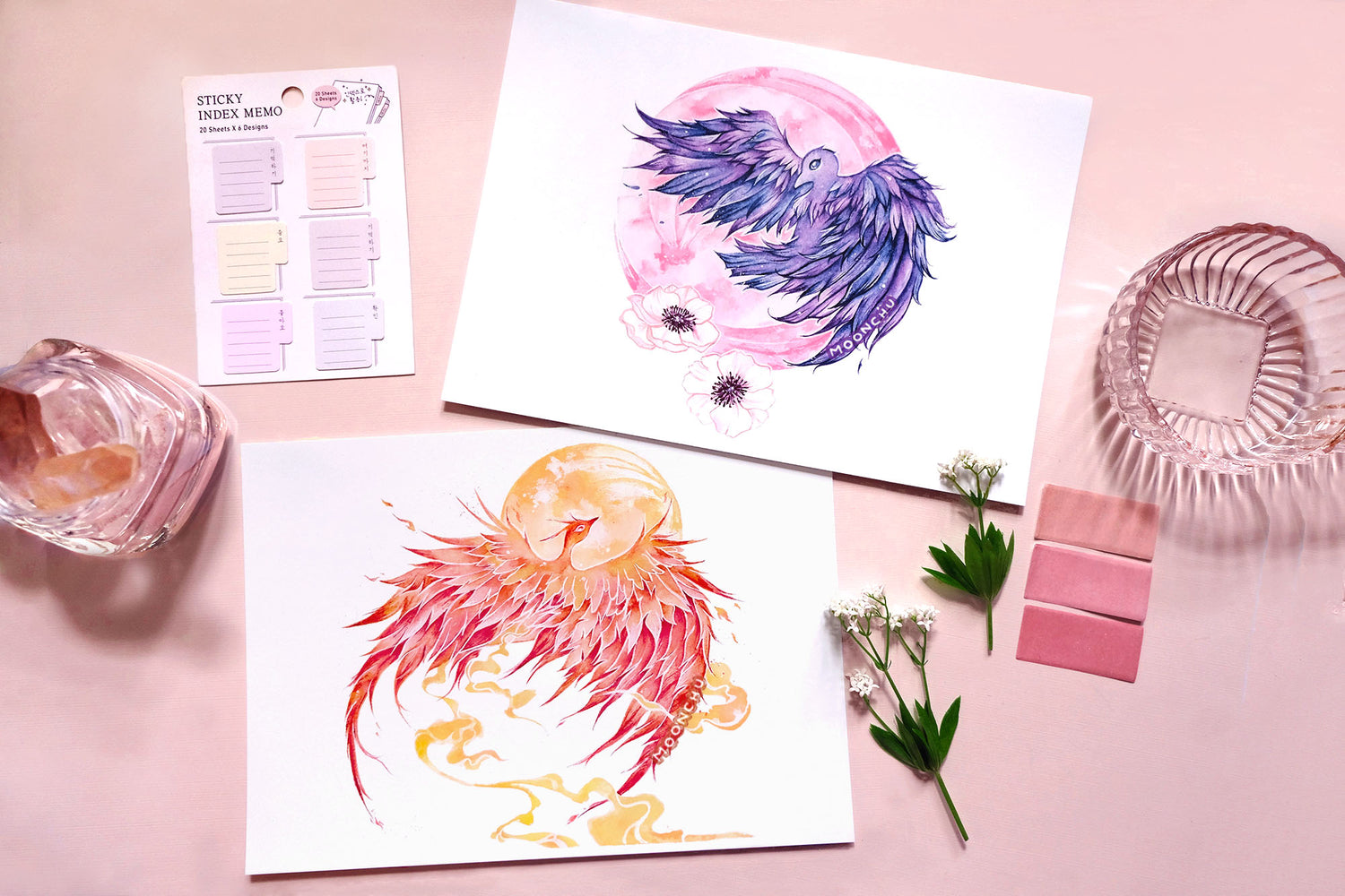 april's pink moon phoenix art, A5 watercolour art print
