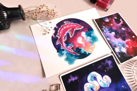 august's sturgeon moon, sturgeon art, A5 mixed media art print
