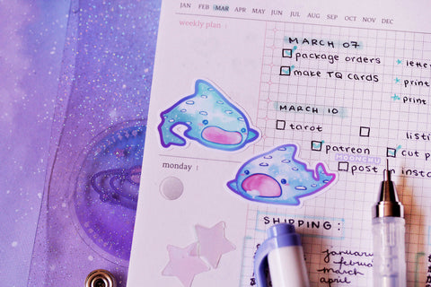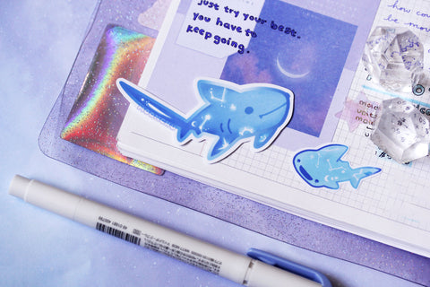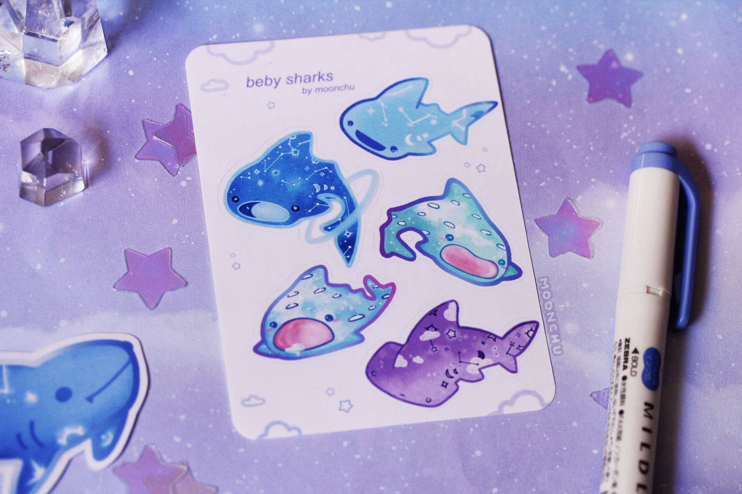 a happy little homage to some of my favourite sharks! this little portable sticker sheet is a nice way to brighten up your planners, stuck in a phone case, put on a corkboard, etc.