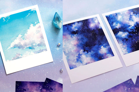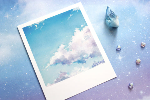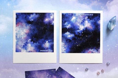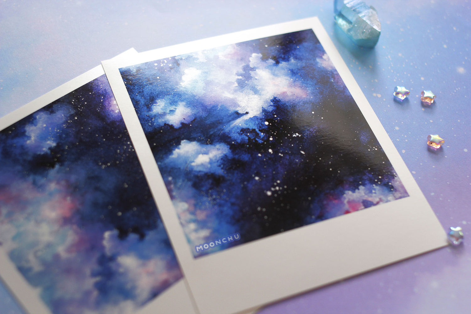 the cloud snapshot is printed on high gloss, weighted paper // nebula prints are on glossy, subtly metallic paper.