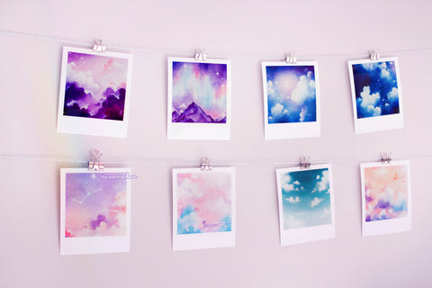 these whimsical galactic snapshot prints will transform any space into a magical window. they would look neat in a bujo journal or hanging from fairy lights in an office or bedroom wall.