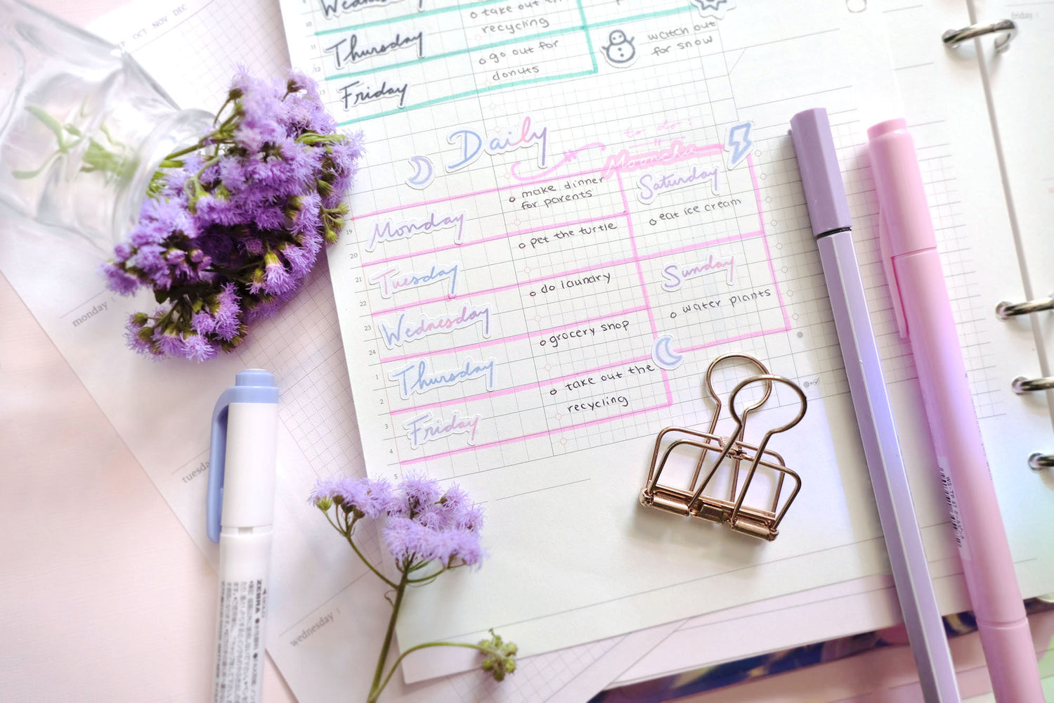 colorful / b&w ITALICS CURSIVE weekly daily monthly productivity planner sticker sheet, typography script stickers
