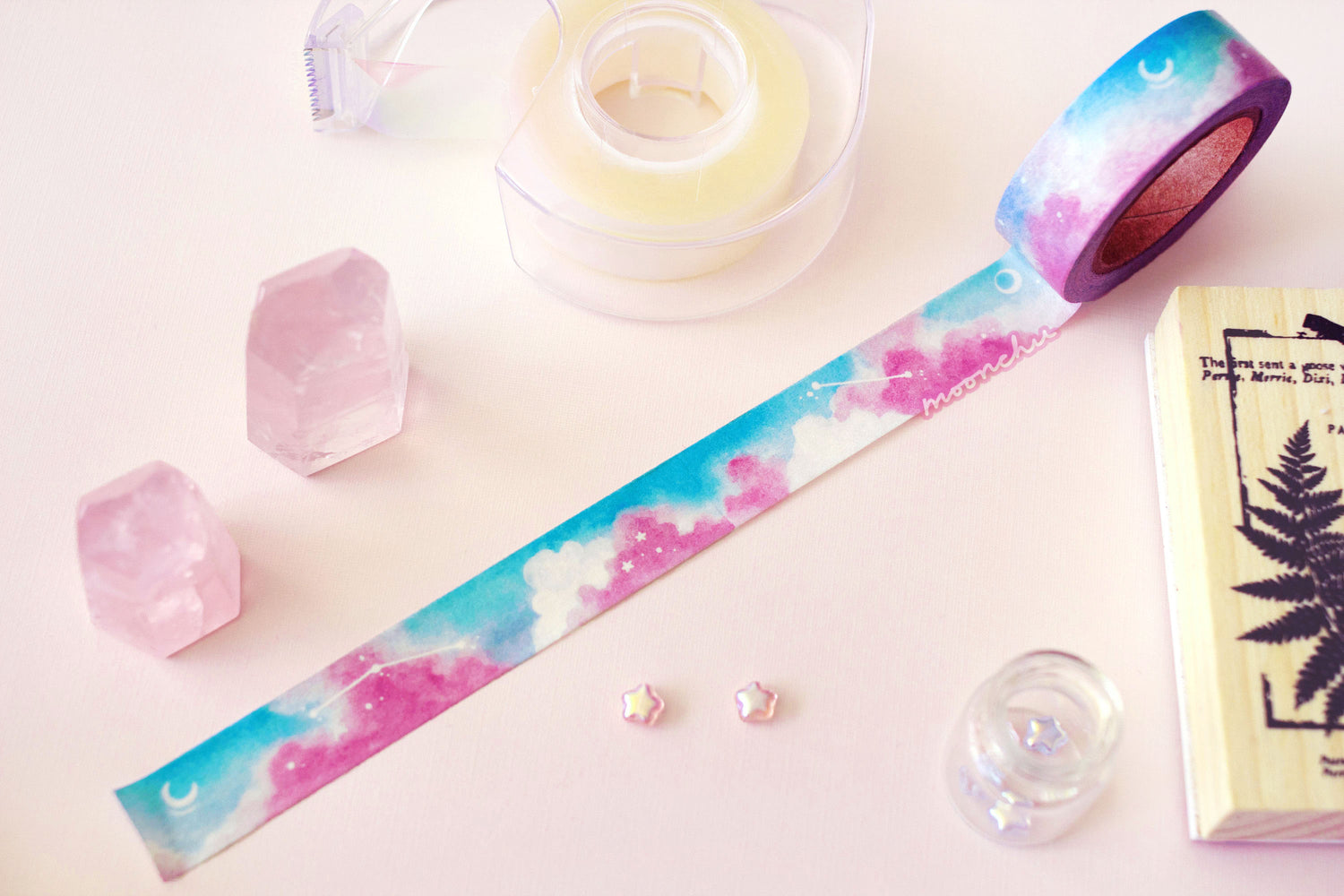 cotton candy clouds washi tape, pastel cloud washi tape, original artist tape