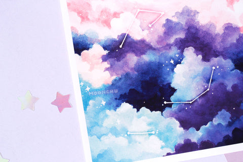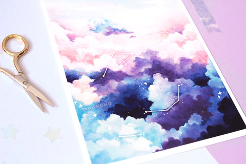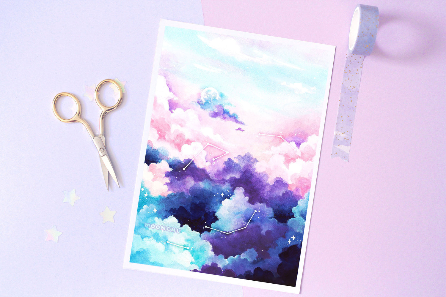 float, cloud art, original moonchu painting, A5 watercolour art print