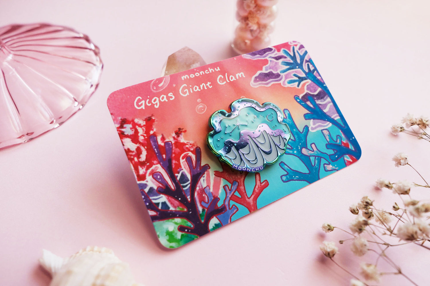 gigas giant clam enamel pin, clam pin, mermaid pin