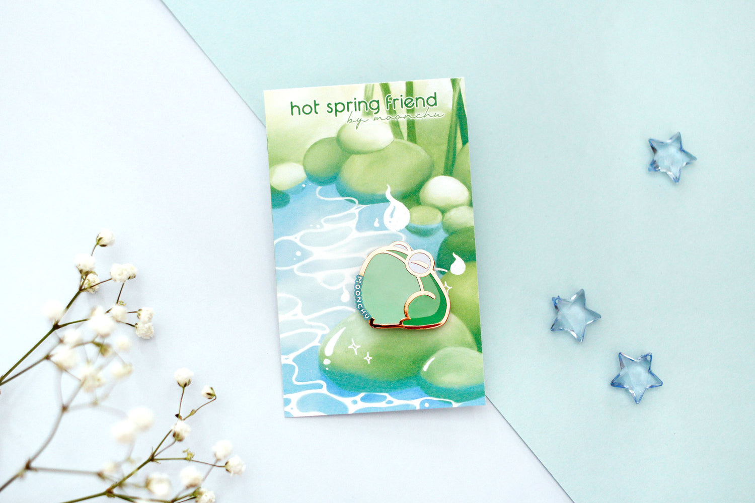 a good luck frog to bring you relaxation and peace this springtime with a soft, grassy hue. he's so zen from the hot springs that his eyes are closed with contentment ~ carry him with you to help embody mindful well-being ~