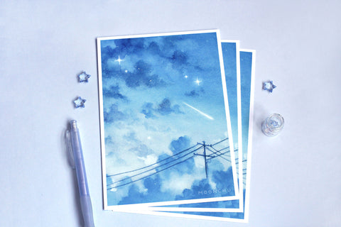 ignored texts, blue cloud sky art, A5 watercolour art print