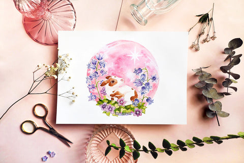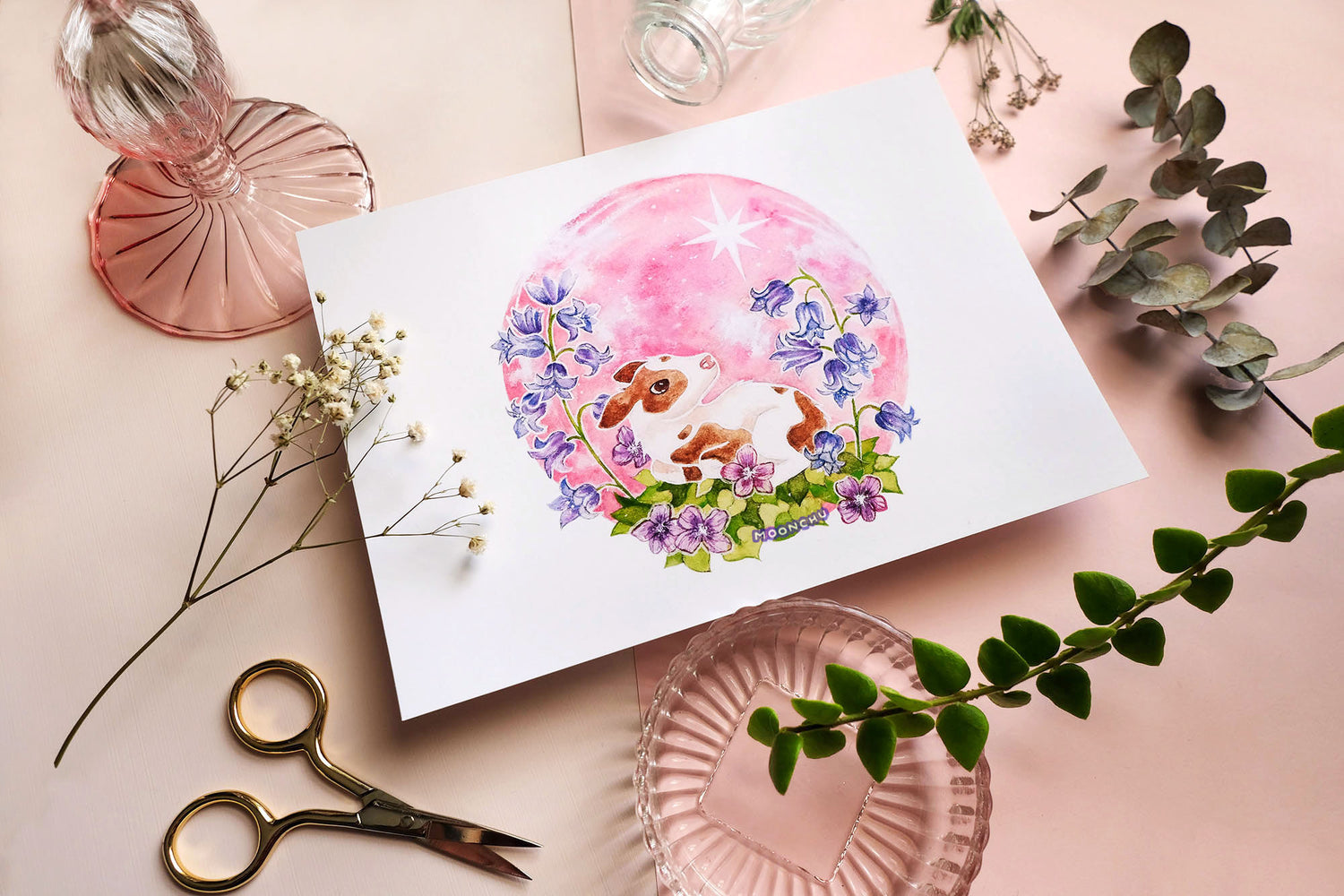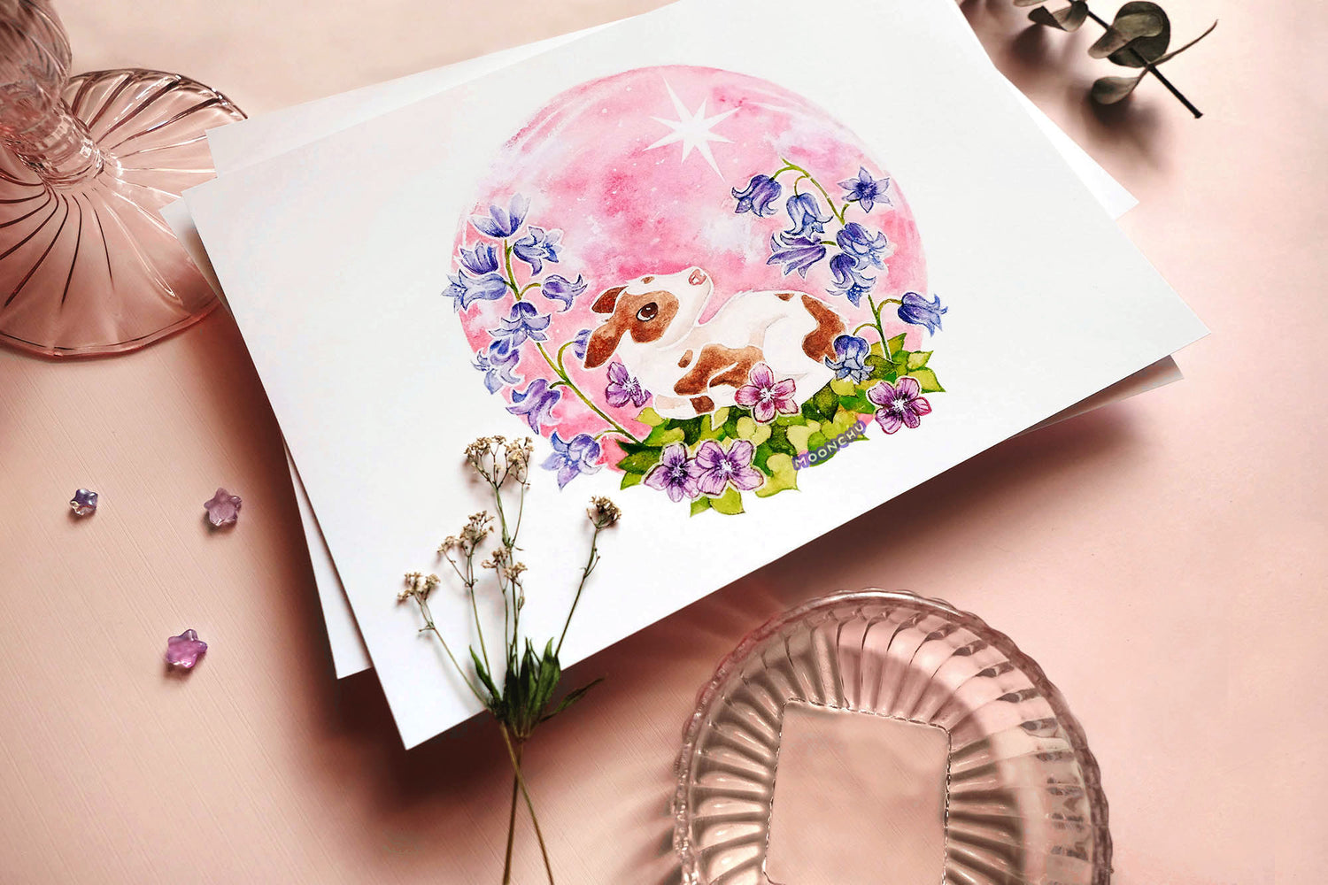 this cute little cow art print is a sweet gift for any animal lover, or adorning a nursery wall based off of whimsical nature creatures.
