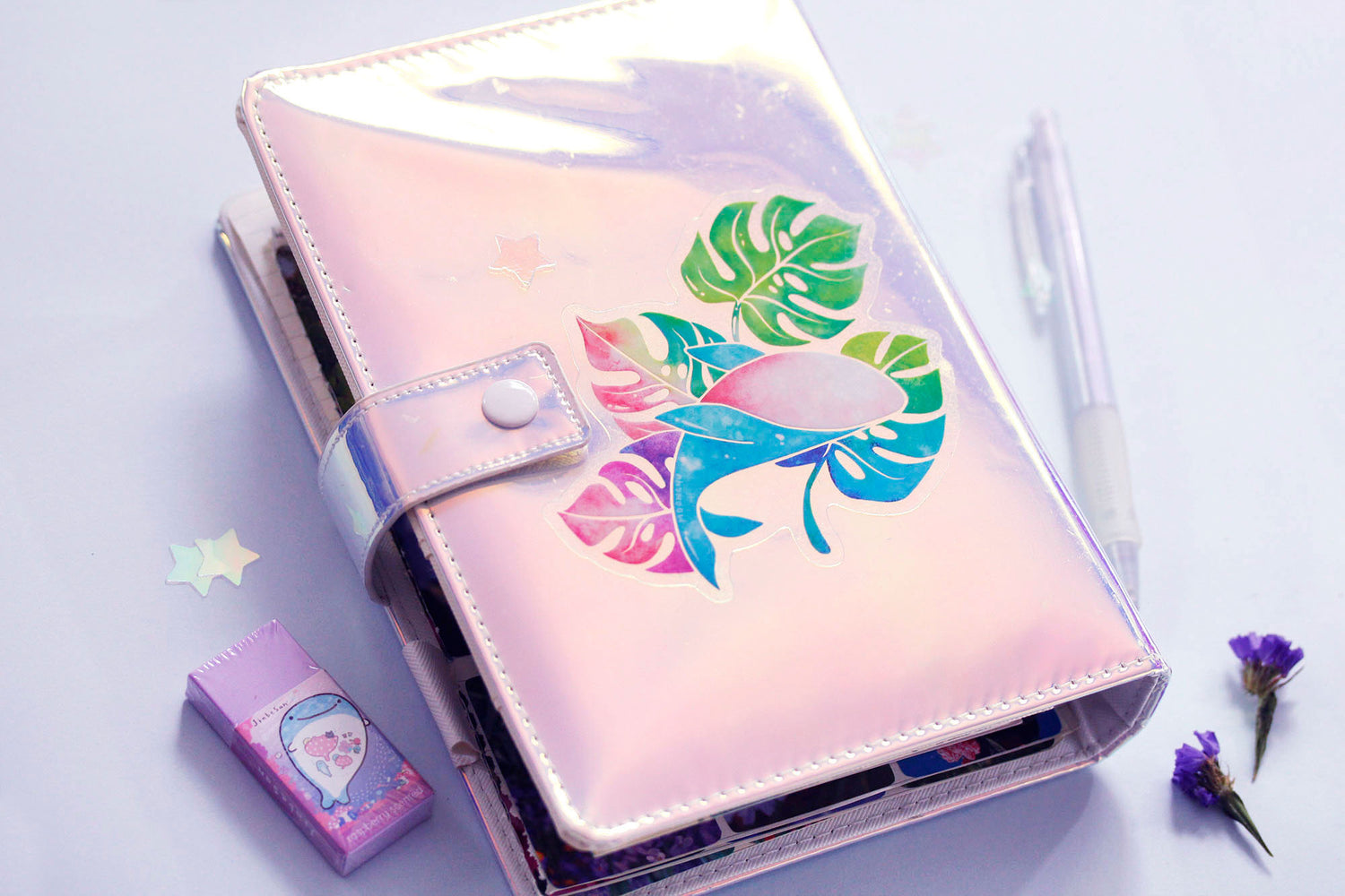 monstera whale sticker, monstera leaf sticker, transparent vinyl sticker