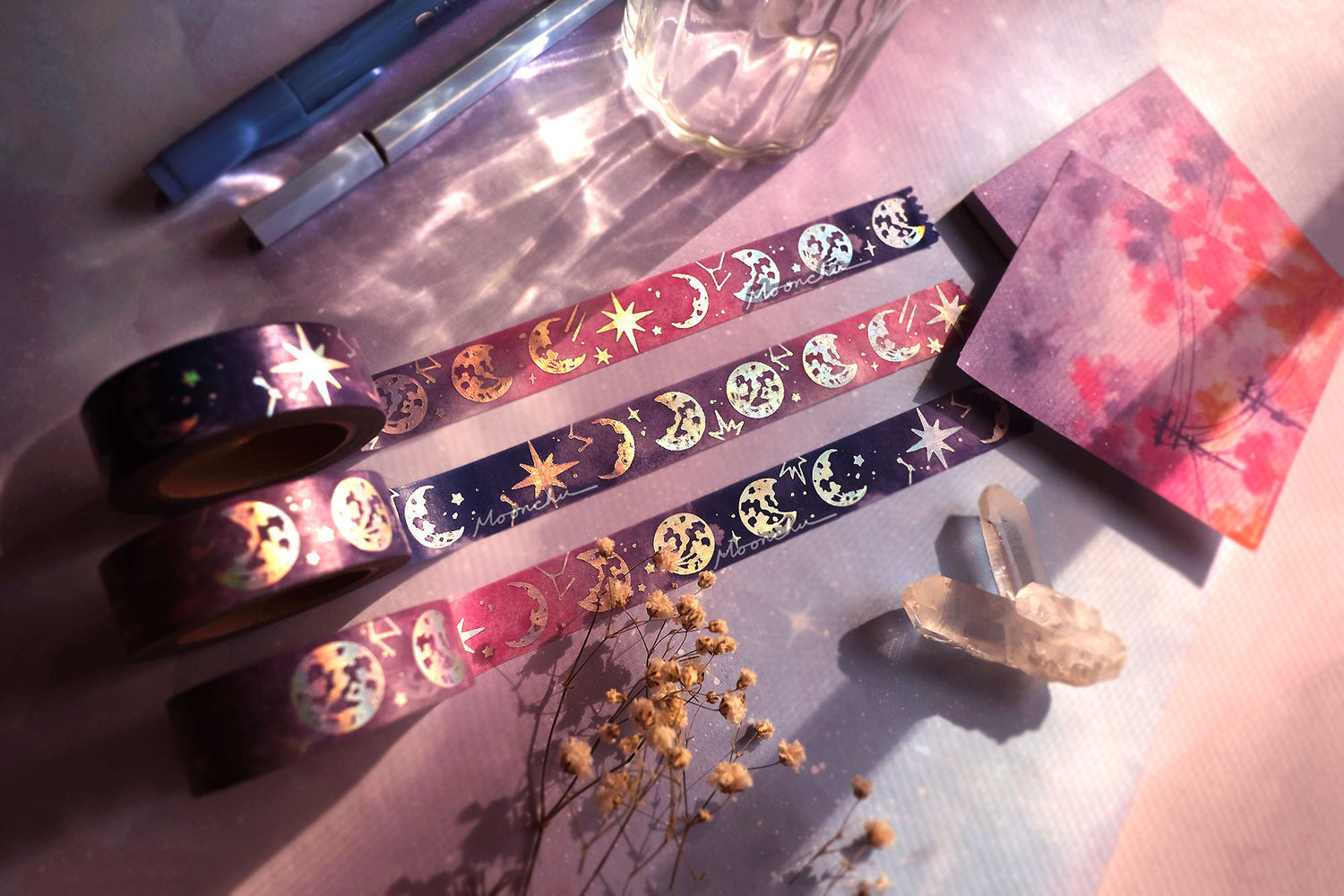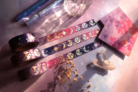 moonchu phases holographic washi tape, moon phase washi tape