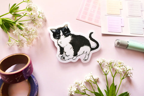 mr. kitty black cat die cut vinyl sticker, black kitty cat sticker, tuxedo cat cute sticker
