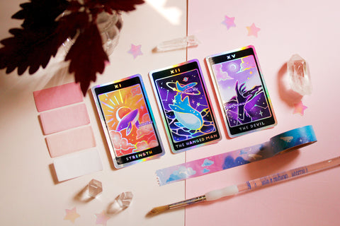 couple tarots turned into portable stickies to bring a little magick into your life.