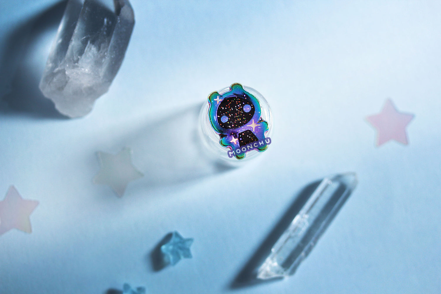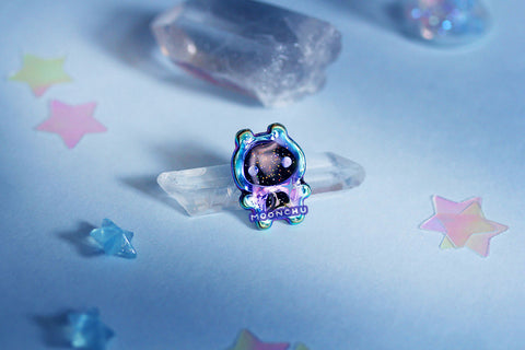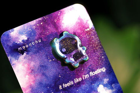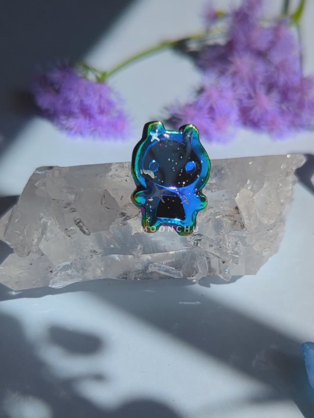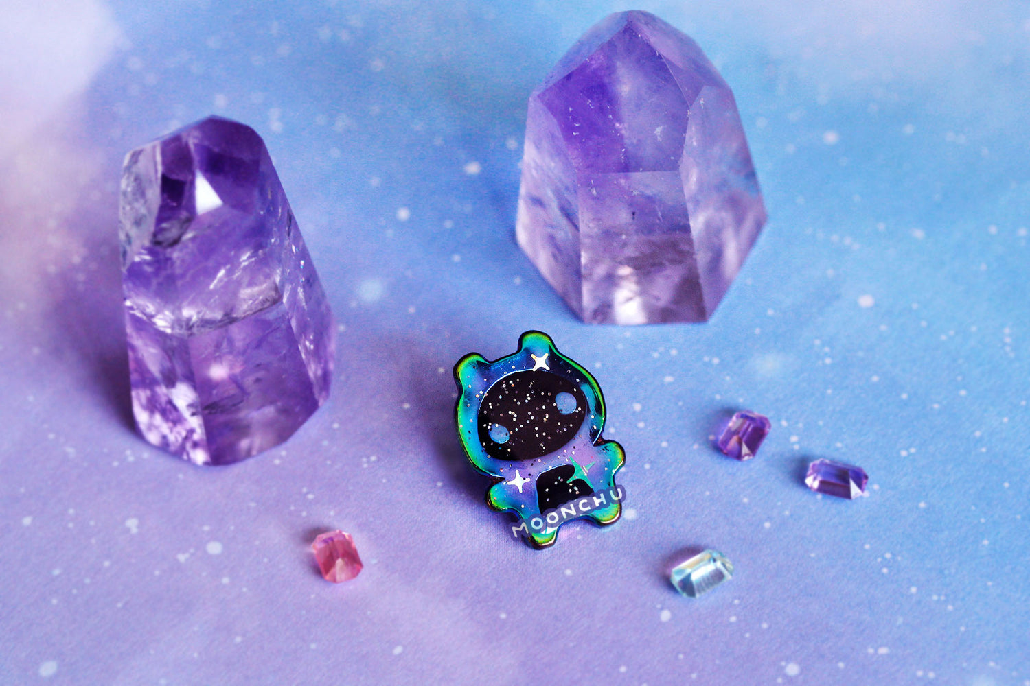 rainbow-shifting space alien babies from a magical planet ~ these unique enamel pins are dusted with holographic stars and twinkles. so charming and tiny, you can't help but take one home with you.