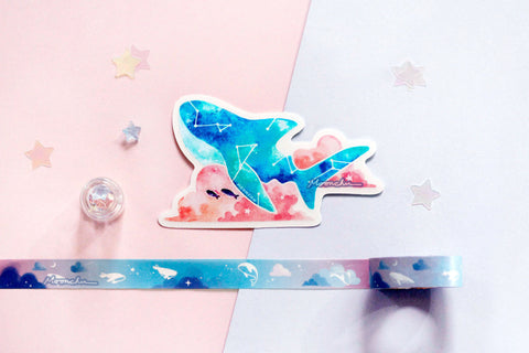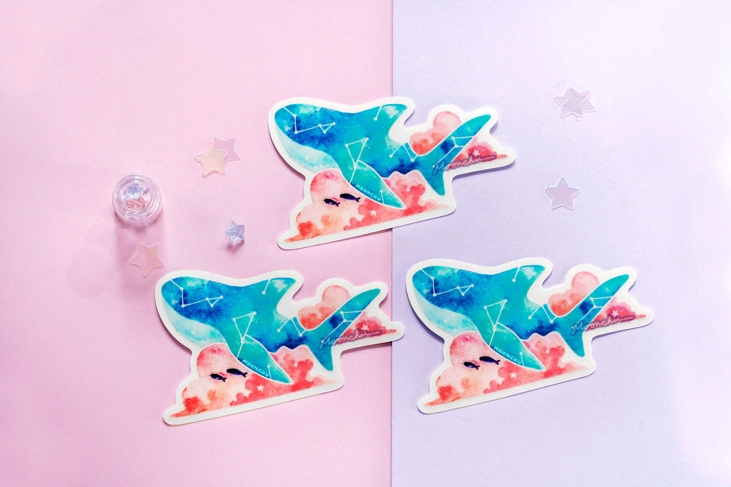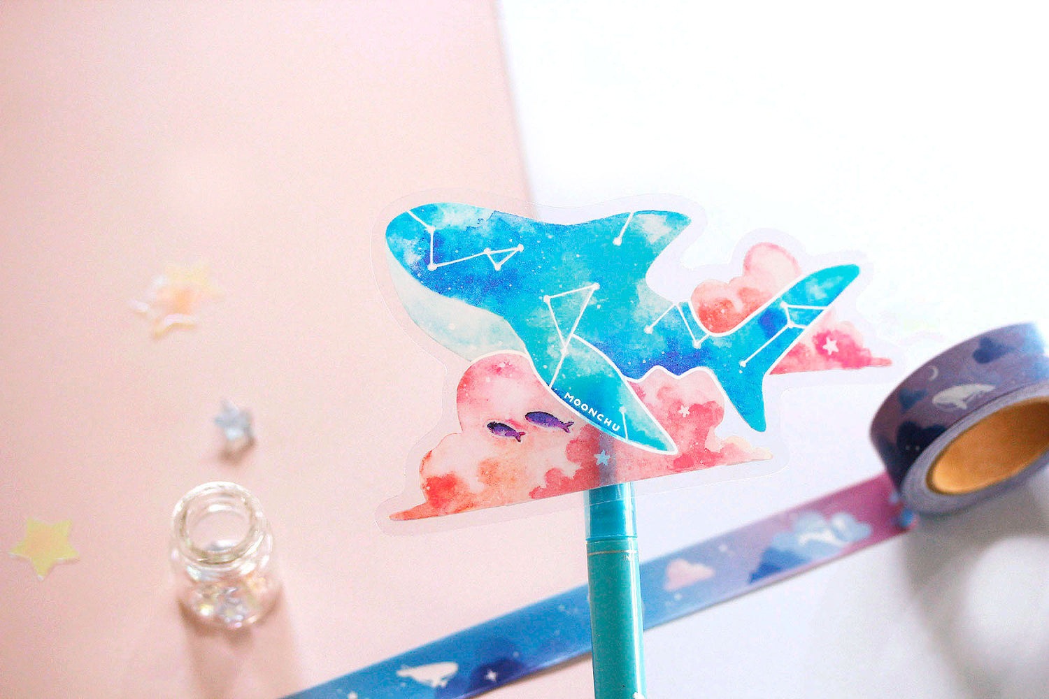 sky whale shark sticker, sky whale sticker, transparent vinyl sticker