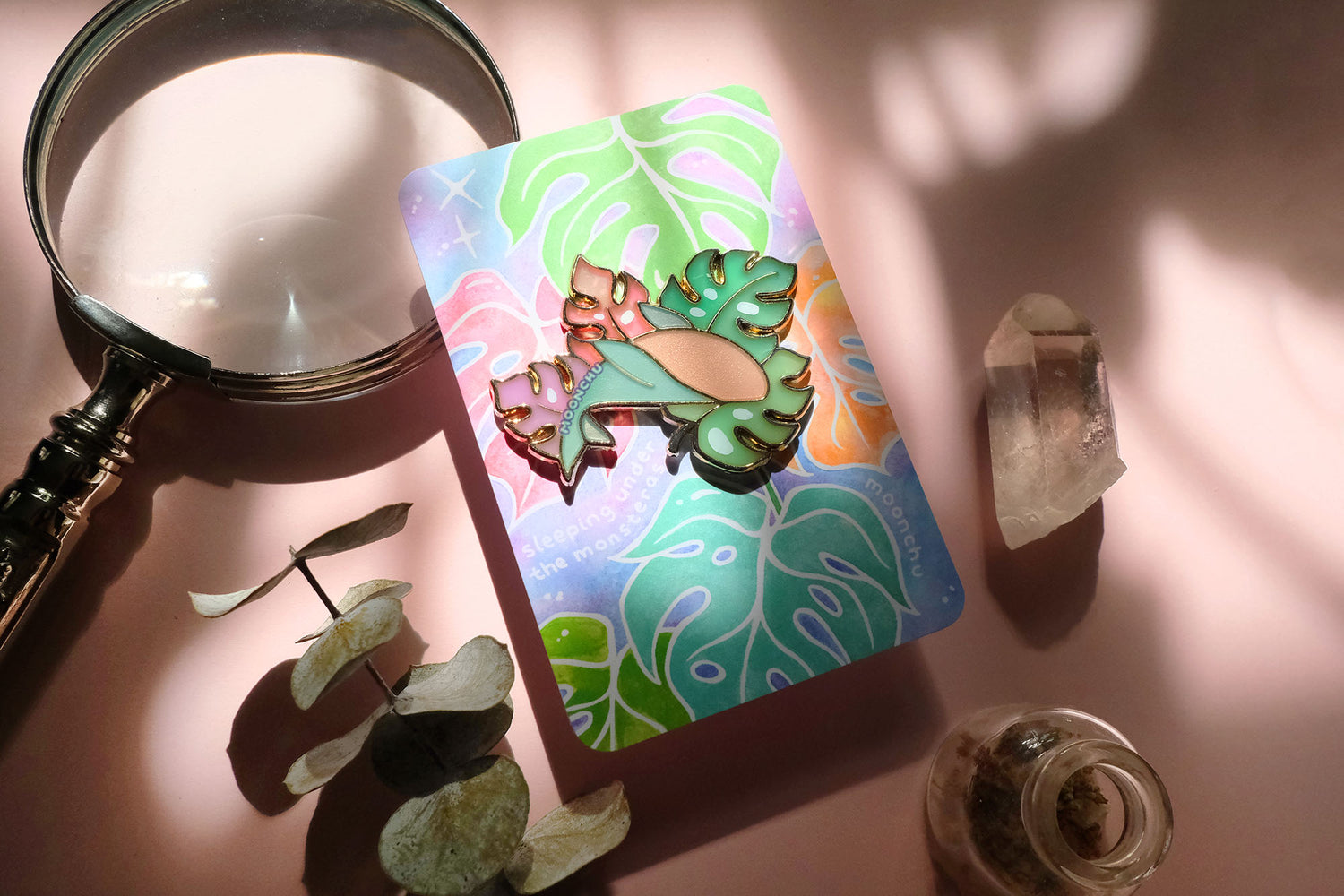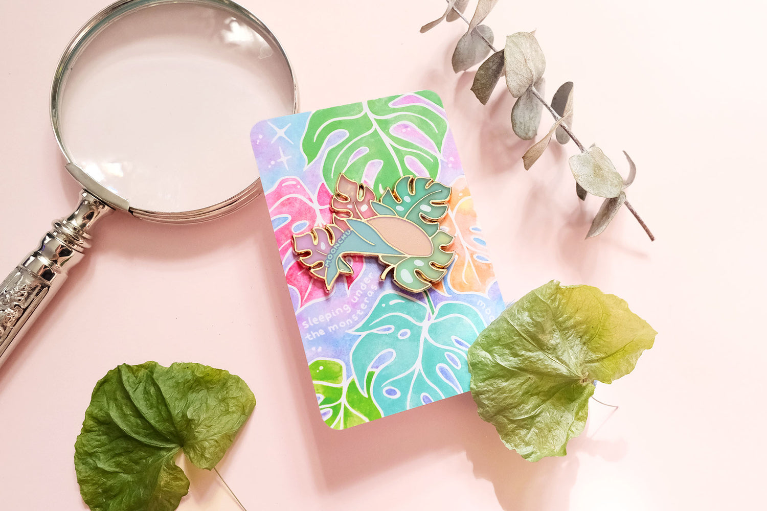 a sweet little sleepy enamel pin companion for plant lovers and ocean lovers alike.