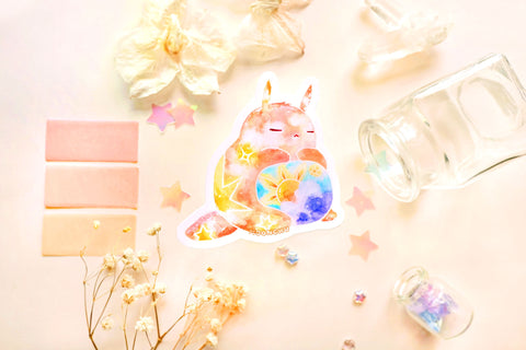 sleepy sun bunny sticker, die cut vinyl sticker
