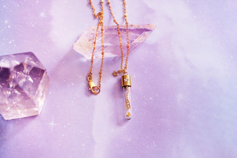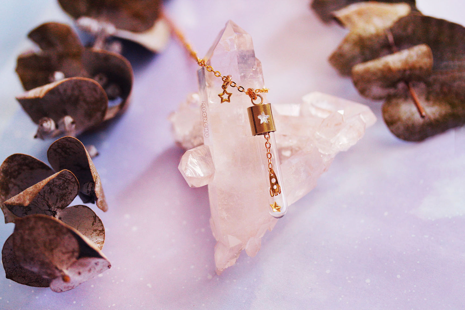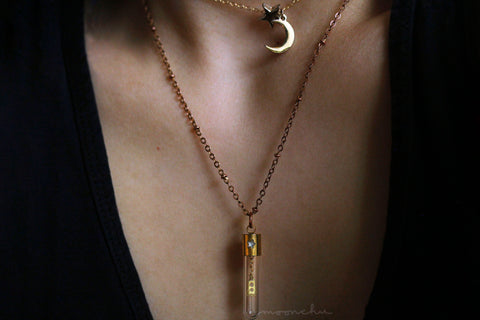 * necklace is unsuitable for children. please be careful as the tube is actual glass, and can shatter if not cared for properly. as with most jewelry, please refrain from wearing in the shower or at night. jewelry findings are subject to tarnish, but you can use a soft cloth and wipe it way. *