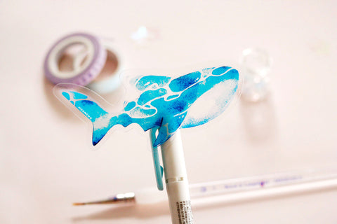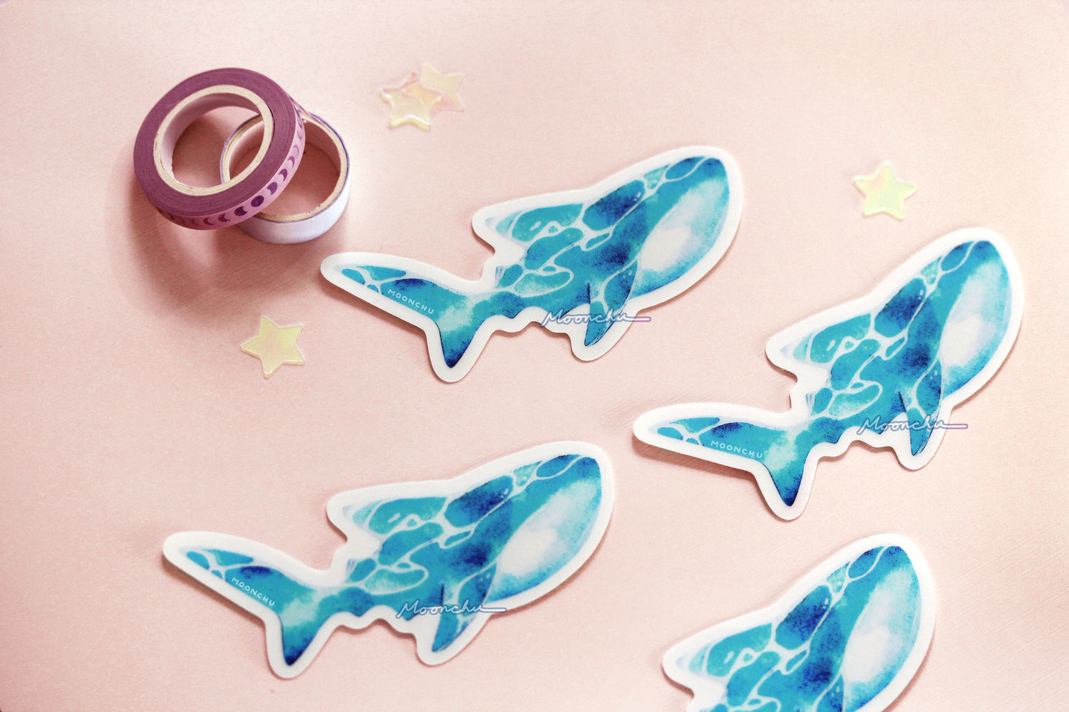 this original moonchu watercolour ocean sticker is a whimsical way to show your love of whales on laptops, water bottles, notebooks, planners etc.