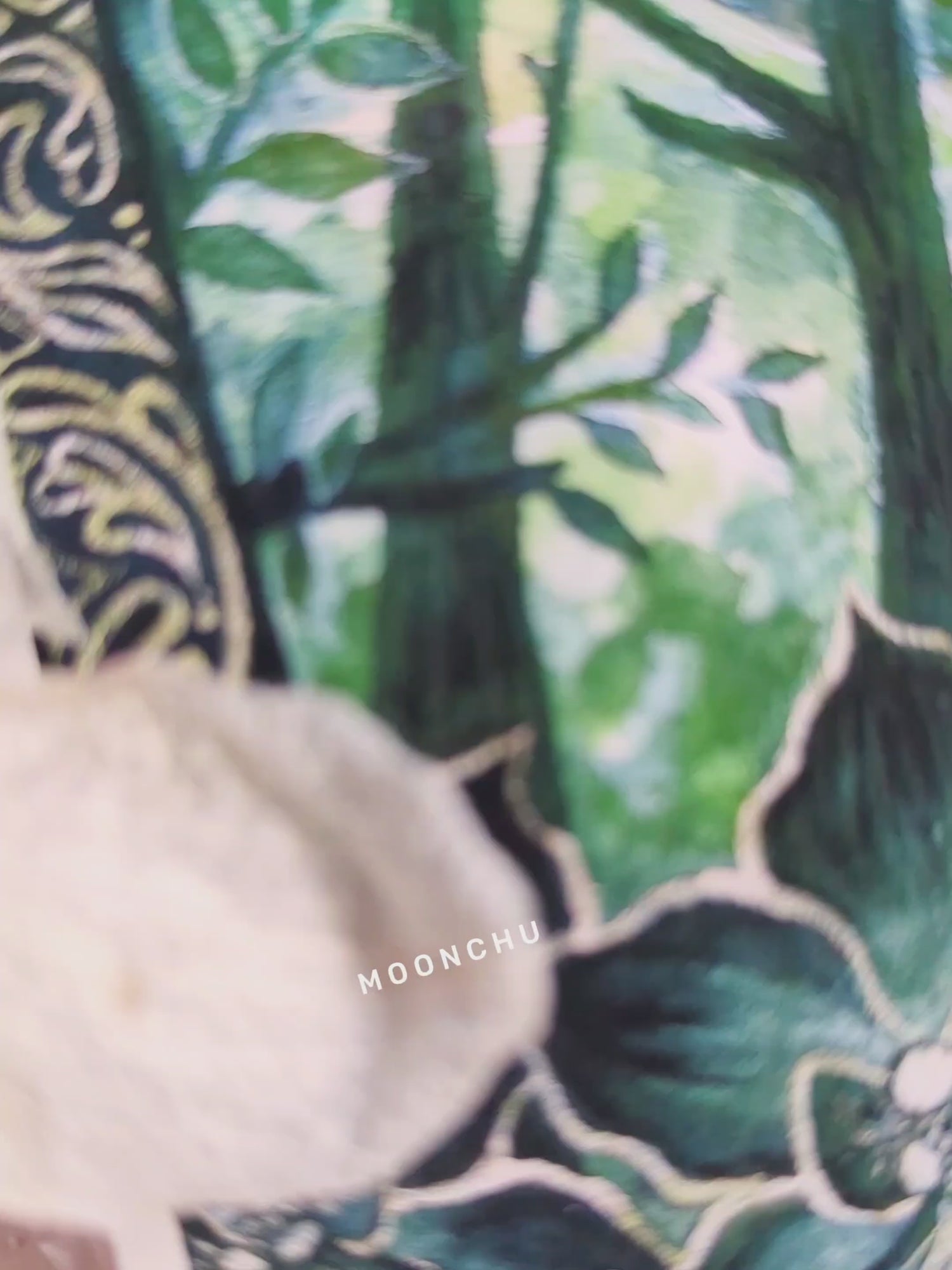 drenched in greens, this original painting is moonchu's interpretation for the year of the snake. a lovely art piece for snake lovers, botanical fiends, forest lovers.